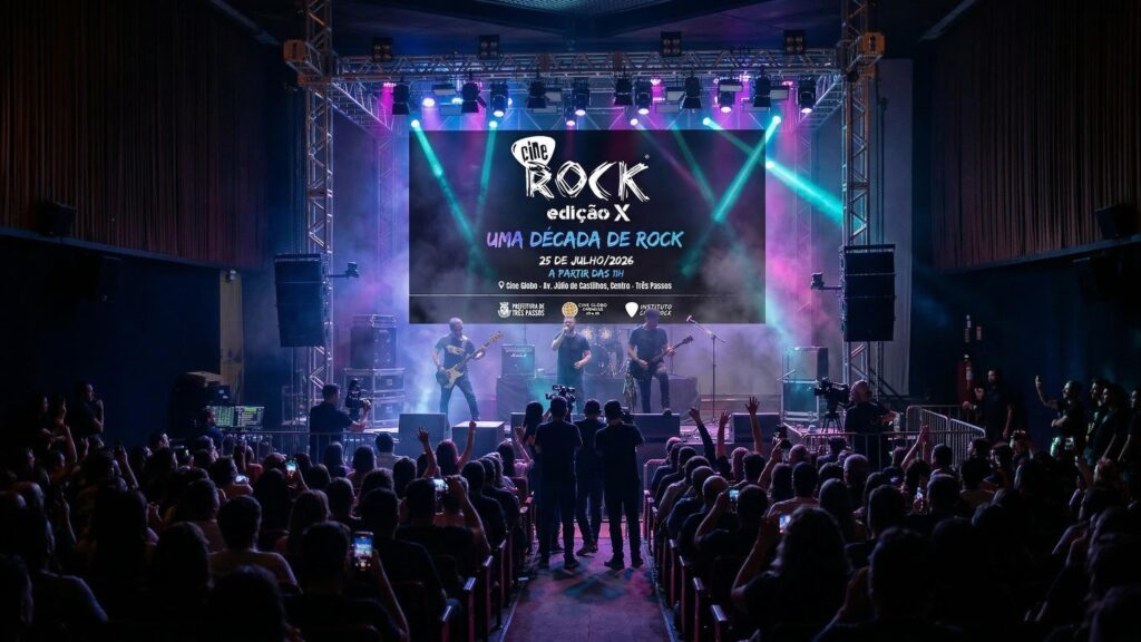 Cine Rock Três Passos chega à sua 10ª edição consolidado como o maior Festival de Rock no Cinema do Brasil. Desde 2015, o evento transforma o Cine Teatro Globo em um palco de valorização da música autoral e dos talentos da região.